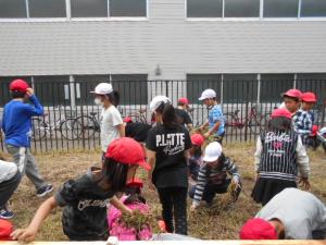 頑張って雑草を抜いています。