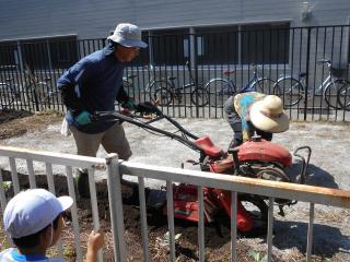 耕運機が土を耕す様子を見て「初めて見た!」と大盛り上がりでした。