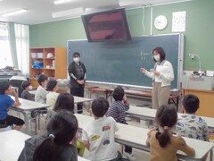 今年度初めての外国語の授業がありました。今年度のALTは、ドナ先生です。今回の授業は「自己紹介をしよう」をめあてに取り組みました。ドナ先生の自己紹介では、出身地・好きな食べ物・得意なことを教えてもらいました。互いに挨拶や自己紹介をする活動では、「Hello.」とはにかみながら挨拶を交わしたり、「My name is〜.」と自分の名前を伝えたりとALTと担任のやりとりを手本に取り組みました。