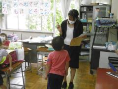 1学期最後の週を迎えました。本日より子供たちは午前授業となり、午後は保護者・担任との個人面談が始まっています。あいにくの空模様で、ちょうど雨が降り始めたころ、子どもと大人がバトンタッチとなり、傘を差しながら下校する子どもの姿も見られました。個人面談では、このふた月余りの中でもたくさん見られたお子さんの成長やがんばりをお伝えしていきます。よいことばかりではなく、ときには課題についてもお話しさせていただきます。こうした振り返りを今後のお子さんの成長につなげていければと考えています。個人面談では密になることはほぼありませんが、保護者の皆様には、入校前の手指の消毒をお願いしています。教室では、廊下側の扉は閉じさせていただくものの、天窓や校庭側の窓を開け、換気を心がけたり、机イスの消毒を行ったりして、感染予防に取り組みながら面談を実施しています。