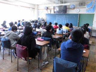 修了式は各教室にて。校長先生のお話、生活指導の先生から春休みの生活についての話を聞きました。