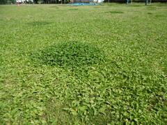 きれいな芝生の校庭が、かわいい?雑草の校庭になり始めています。大ピンチです。一昨年度の休校期間後から、少しずつ増え始めた雑草が、この春には、昨年度と比較して数倍に増えてしまっています。・・・・・・・・。