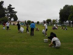芝生保全のための芝刈り・雑草抜き(芝生救出大作戦)として、保護者・児童の皆様、育成会メタセコイヤの方、避難所運営協議会委員の方、主任児童委員の方等地域の皆様に加え、ひばりが丘中学校、校長先生をはじめとする教員の皆様、男女バレー部、男女バスケ部、本校卒業生の皆様のご協力のもと、本校教職員も加え、総勢延べ100人を超える人数の皆様にご協力いただきました。30分間でしたが、大きなビニル袋4袋近く雑草を抜くことができました。大変助かりました。ありがとうございました。