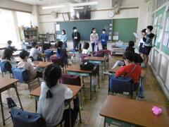 5年生は、担任の先生クイズ。参加型で楽しいひと時でした。