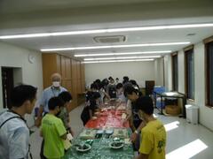その後すぐに、野外炊事です。それぞれ出来上がったカレーはとってもおいしい味でした。ピカピカにできないと合格しない鍋磨きは、一発合格の子も数名。一番大喜びしたのは大人でした。