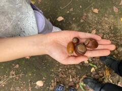 生活科の学習で、「秋探し」にいこいの森公園に行きました。メインはドングリ集めでした。帽子がついているどんぐり、触るとつるつるのドングリ、色が違うドングリなど多種多様なドングリを見付けつことができました。また、黄色や赤に色づいた葉をだけでなく、「グラデーションの葉見付けた」と言って大喜びしている子もいました。諸感覚を使って様々な視点で「気付く」ことができ、しっかりと学べたいこいの森の校外学習でした。