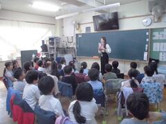 5〜6名で手をつなぎリレーをするという単純で分かりやすいものでしたが、「勝つために」の創意工夫をする余地がたくさんあり、各チームごとによく考え協力しながらゲームを楽しみました。福西さんのわかりやすい指示でゲームに引き込まれていきました。最後に代表児童によるPK対決までしていただき、思い出に残る1時間でした。