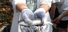 「川魚グルメ館くるま」にて魚つかみ