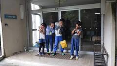 朝の集い、一番に集まりました。