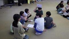学年レク、みんなのヒントで言葉を当てます。