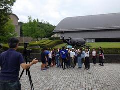 記念撮影の定番、大きなカブトムシの前で。
