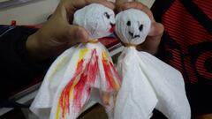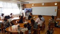 シータとノーヤが来校しリモートで下の谷遺跡や縄文給食のお話をしていただきました。