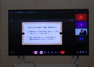 今日は全小学校の代表児童が一堂にオンラインでつながり、学校紹介と教育委員会からの説明や後藤教育長からお話をいただきました。