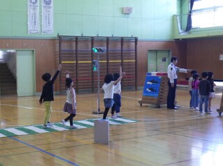 今日の2時間目は、1年生の「交通安全教室・防犯教室」です。