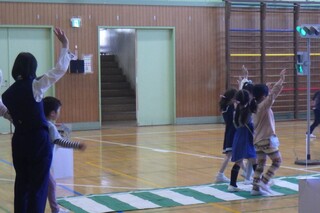 田無警察署の皆様、防犯協会の皆様、市役所交通課の皆様のご指導のもと、「自分の身は自分で守る」「命の大切さ」を体験として学びました。実際に道路での横断を想定した学習では、一旦停止、左右左、右左右の確認、手を挙げて横断など、基本的な動作をしっかり学びました。また、防犯では、「いかのおすし」を体得するために声を出したりしながら学習しました。