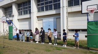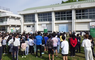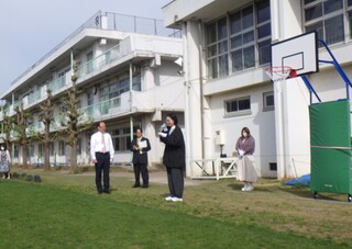 今朝は、昨年度までの谷戸小PTAの皆様から「バスケットゴール」2台をいただいたことから、贈呈式と感謝式を昨年度までのPTAの役員の皆様にお越しをいただき、校庭で行いました。