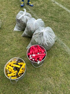 時折小雨がぱらつく中芝生の救出では、サッカーチームを中心に子どもから大人まで総勢70名近くの皆様に、雑草を抜いていただきました。特にトラック(走るコース)を集中的に抜いていただき、70周年記念やとっこ体育まつりでは気持ちよく走れます。心より感謝申し上げます。
