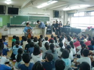 音楽鑑賞教室に引き続き、今回は演奏者の方々に学校に来ていただき、音楽のアウトリーチ体験を行いました。 フルートの音の出る仕組みや様々な楽器の種類などについて、演奏を聴き、演奏者の方と交流しながら楽しく学ぶことができました。市民祭り街頭パレードの練習に励んでいる5年生。今回の体験を生かして、さらに完成度を上げていきましょう。