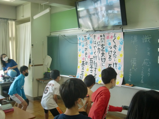 5年生の教室では、学活の時間に学級目標について考えていました。