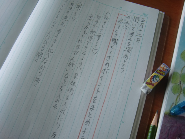 具体例を出す、メリットデメリットをわかて話すなど、6年生なりの工夫をを考えていました。