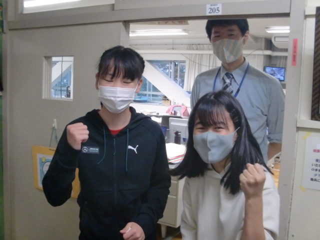 職員室前では、広報委員会が今月決まった後期委員会の委員長さんを撮影していました。