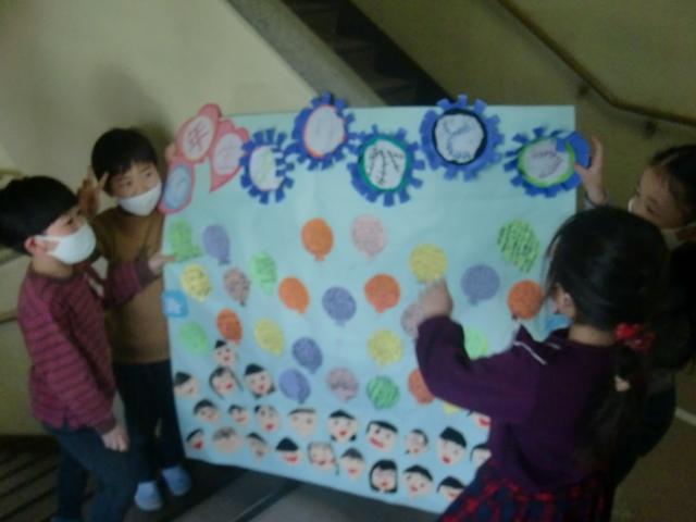 6年生を送る会に参加するのは、5年生だけなので、1年生はメッセージカードを送っていました。