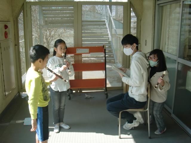 同じく3年生の廊下では、リコーダー「山のポルカ」のチェックをしていました。美しい音色が聞こえてきました。