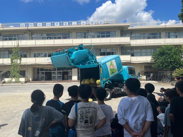 収集車の中身を見せてもらうと、「おおお〜!」と歓声が上がり、興味深々な様子が伝わりました。