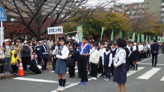 6年生は、市民祭りにマーチングパレードで参加しました。