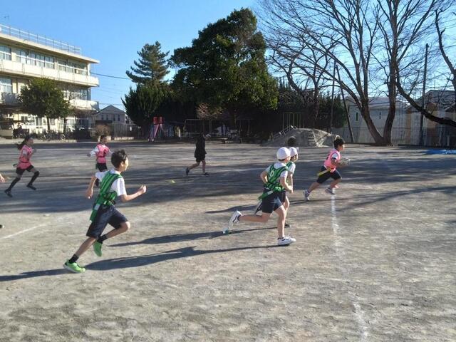 5年生は、体育の授業で「フラッグフットボール」に取り組んでいます。