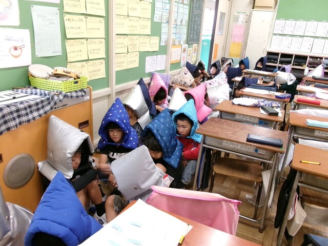 「竜巻き警報発令」を想定しての避難訓練を行いました。