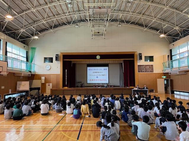 戦争に纏わる物語を学習した3・4年生は、戦争時代の講和を聞きました。