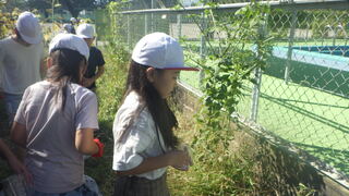 3年生の理科の学習では、生き物についての学習をしています。この日は外に出て、バッタやカマキリなどの昆虫を探しました。草むらに隠れているところを見つけられたかな?
