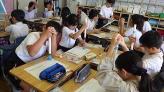 4年生の理科の学習で、『とじこめた空気をおすとどうなるのか』を実験しました。押せば押すほど、空気が押し返してくる手ごたえを感じることができました。