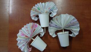 2学年国語科「紙コップ花火を作ろう」の学習です。大事な言葉や文を見つけながら読み深めた後、実際に制作した「オリジナルの紙コップ花火」です。