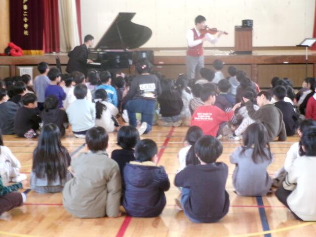 音楽鑑賞教室(1、2年生)がありました。プロが奏でる楽器の美しい音色や軽快な語り、楽器体験や合唱など様々な体験をしました。みんな目を輝かせ、耳を澄ませ、楽しい時間を過ごしました。