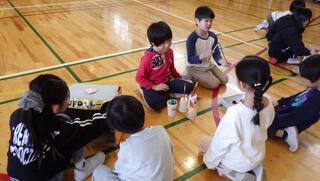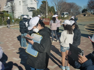 3学期初めてのなかよし班活動。晴天の下、元気に活動していました。