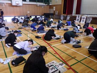 3学期の始業式が終わってすぐに、席書会がありました。6年生の集中する姿が素敵でした。