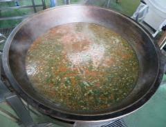 給食では納豆も加熱しないといけないので、納豆を加えて温めます。納豆の香りが漂います…。