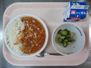 夏野菜カレーライス コールスローサラダ 牛乳