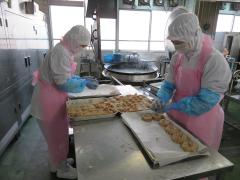 今日は一人二個なので、いつもより小さめのパンです。固くならないように手早く揚げます。