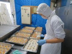 さつまいもチップスは、さつまいもをすごく薄く切って、油でパリパリになるように揚げます。いつも野菜チップスを作る時は塩をまぶしていますが、今日は粉砂糖をまぶしてあまい味に仕上げました。今日のさつまいもは「紅はるか」です。粉砂糖をまぶさなくても、かんでいるとあまみが感じられてとてもおいしかったです。子供たちからも大人気でした!