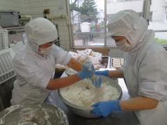 給食室できれいに洗って3等分に切って蒸しました。あまい良い香りです。