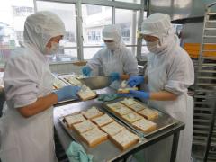 アップルチーズトーストは、カッテージチーズに砂糖とはちみつをよく混ぜ合わせて、そこに少し煮たりんごを合わせてパンに塗って焼いたあまいトーストです。チーズが苦手な人でも食べやすいように、あまめの味付けにしました。子供たちの好みは分かれたようですが、教職員からはとても好評だったので少し大人の味だったのかもしれません。トーストではなくチーズケーキにしてもおいしそうな味でした。