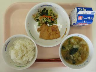 ごはん 鶏肉のレモンしょうゆ焼き おひたし 白菜のみそ汁 牛乳