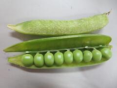 さやのままのグリンピース。このまま食べられそうな気もしますが、さやは硬いです。