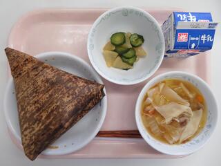 中華ちまき 華風きゅうり ワンタンスープ 牛乳