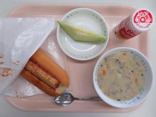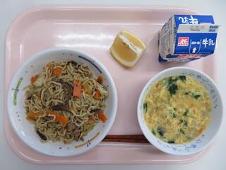 焼きそば 中華風コーンスープ ニューサマーオレンジ 牛乳