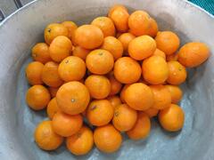 ニューサマーオレンジは、グレープフルーツのように皮が黄色いです。「レモンですか?」と聞いてくる子もいました。