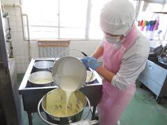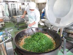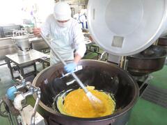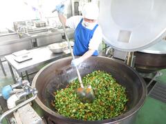 給食では卵にしっかり火を通すため、炒り卵を作ってから野菜と合わせます。